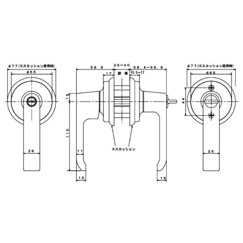 ●インテグラル錠●用途…鉄扉、木製扉用●防犯性の高いディンプルキー仕様です。●レバーハンドルへの交換でバリアフリーに。●ドア厚…32~40mm●バックセット…64mm●フロントビスピッチ…110mm●取付ビスピッチ…44mm●内側…サムターン●外側…シリンダー●サイズ…レバー長:123mm、出幅:59.9mm、丸座径:φ65mm●重量…約1175g●付属品…ディンプルキー(5本)、ストライク、φ77mmエスカッション、蓄光シール、ストッパープレート●丸座の跡を見えなくするφ77mmエスカッション(SUS304)●暗闇でもキー差込み口をわかりやすくする蓄光シール●レバーを必要以上に回らなくするストッパープレート(SUS430)●参考在庫数・商品詳細・サイズ情報はメーカー(参考)URLからもご確認いただけます。 ●最小出荷単位: 1