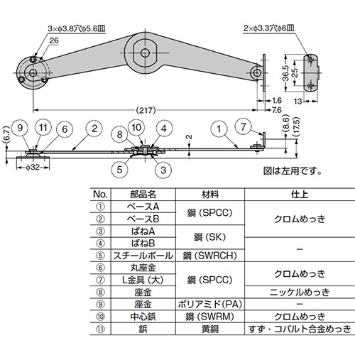 ●全長…217mm●用途…右用●材質…スチール(クロムメッキ仕上げ)●穴径…3.3mm●耐荷重…約2kg●引張荷重…41.8kgf●重量…122g●取付ねじ無し●キャッチ機構付●※扉の重量によっては、キャッチ機構が効かない場合もあります。●参考在庫数・商品詳細・サイズ情報はメーカー(参考)URLからもご確認いただけます。 ●最小出荷単位: 1