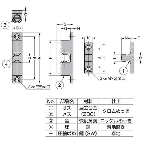 EA951M-13 70.0mmボールキャッチ亜鉛合金
