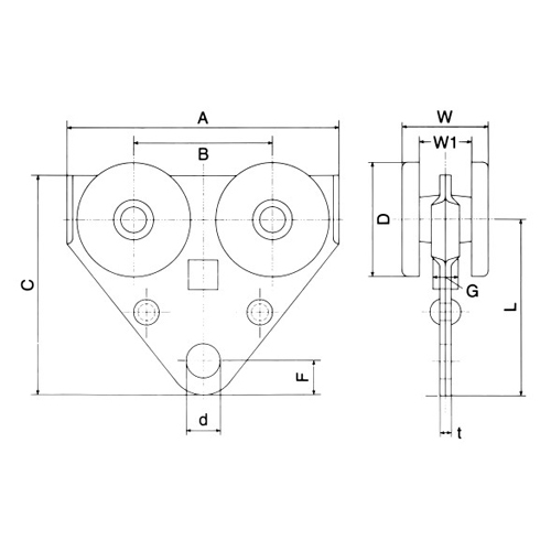 ●メーカー…ヤボシ●型番…3FKLL●車材質…スチール(SPHC)●穴径…15mm●呼称…3号●サイズ…126×37×100(H)mm●耐荷重…75kg●本体材質…スチール(SPHC+オイルレスメタル)●重量…540g●サイズ(mm)…A:126、B:68、C:90、D:50、F:15.5、W:37、W1:23、L:75、G:12、d:15、t:5.2●クロメートメッキ仕上げ●参考在庫数・商品詳細・サイズ情報はメーカー(参考)URLからもご確認いただけます。 ●最小出荷単位: 1