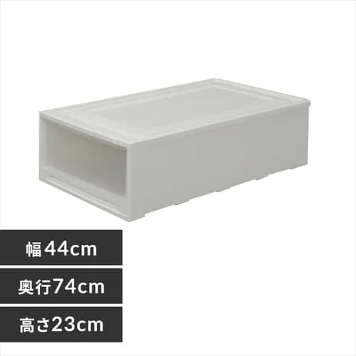 ●メーカー…アイリスオーヤマ(IRIS OHYAMA)●型番…MG-7423W●●ポリプロピレン(PP)…外見はポリエチレンに似ていますが、最も硬質で引っ張りの強さがあります。比重も0.9~0.92と汎用プラスチックの中では最も軽いのも特徴です。耐熱性は高く110度くらいです。また、絶縁性が高く薬品にも強いという性質を持っています。●奥行のある押入れサイズでも楽に引き出せる金属レール付き。軽い力で開閉できます。●積み重ね可能●引出しは中身が見えるクリアタイプです。●材質…本体:ポリプロピレン、金属レール:スチール●サイズ…440×740×230(H)mm●引出内寸…345×685×175(H)mm●重量…2.71kg●参考在庫数・商品詳細・サイズ情報はメーカー(参考)URLからもご確認いただけます。 ●最小出荷単位: 1