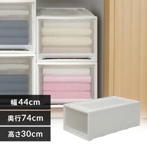 ●メーカー…アイリスオーヤマ(IRIS OHYAMA)●型番…MG-7430W●奥行のある押入れサイズでも楽に引き出せる金属レール付き。軽い力で開閉できます。●積み重ね可能●引出しは中身が見えるクリアタイプです。●材質…本体:ポリプロピレン、金属レール:スチール●サイズ…440×740×300(H)mm●引出内寸…345×685×245(H)mm●重量…2.83kg●参考在庫数・商品詳細・サイズ情報はメーカー(参考)URLからもご確認いただけます。 ●最小出荷単位: 1