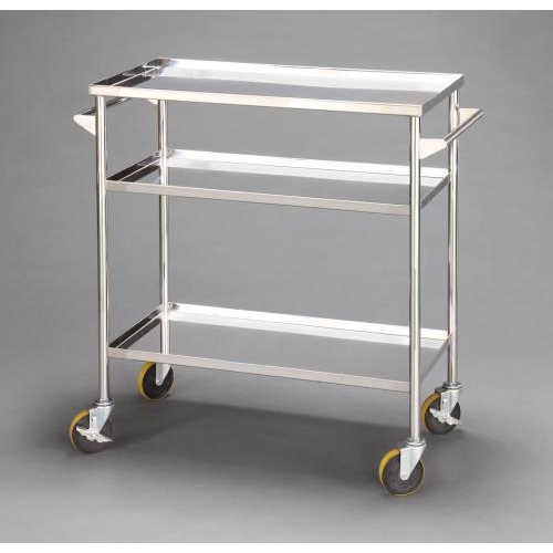 ●材質…ステンレス●サイズ…800×400×875(H)mm●キャスター…φ100mmゴム車●耐荷重…90kg(30kg/段)●重量…20kg●両端に取手2個付●棚板は皿型です。●自在キャスター4個(内2個ストッパー付)●商品は完成品です。●参考在庫数・商品詳細・サイズ情報はメーカー(参考)URLからもご確認いただけます。 ●最小出荷単位: 1