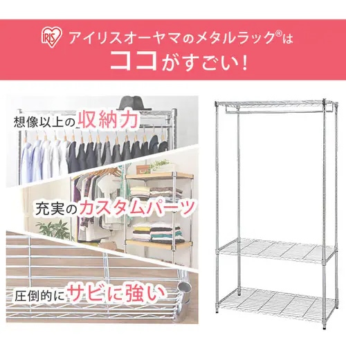 ●メーカー…アイリスオーヤマ(IRIS OHYAMA)●型番…SEW-913E●※注意※…【お客様組立品】●材質…棚板・ポール・ハンガーパイプ:スチール(クロムメッキ)棚板固定部品:ABS樹脂アジャスター:スチール、ナイロン樹脂●ポール径…φ25mm●サイズ…910(W)×460(D)×1785(H)mm●重量…10.8kg●棚板…3枚●耐荷重…全体:200kg(棚板1段あたり:60kg、ハンガーパイプ:20kg)●釘やねじを使わずに簡単に組み立てる事が出来ます。●ラック上部にハンガーパイプ付●棚板の高さは自由に変更可能です。●参考在庫数・商品詳細・サイズ情報はメーカー(参考)URLからもご確認いただけます。 ●最小出荷単位: 1