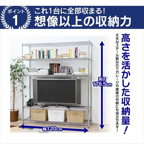●メーカー…アイリスオーヤマ(IRIS OHYAMA)●型番…MR-1218J●※注意※…【お客様組立品】●メタルラック用アクセサリー類をお使い頂けます。(適合品のみ)●ポール径…φ25mm●クギやネジを使わず簡単組立●材質…棚板・ポール:スチール(クロムメッキ)、固定部品:ABS樹脂●耐荷重…500kg(棚板1枚当り:約125kg)●棚板の高さは自由に変更可能です。●サイズ(mm)…1200×460×1785(H)●重量…29.5kg●棚板…5枚●参考在庫数・商品詳細・サイズ情報はメーカー(参考)URLからもご確認いただけます。 ●最小出荷単位: 1
