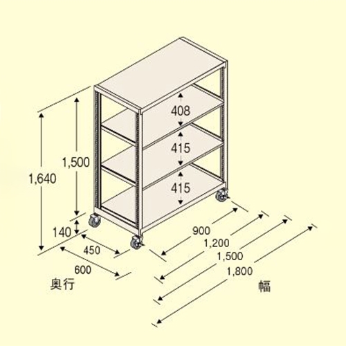 ●※注意※…【お客様組立品】●サイズ…1500(W)×450(D)×1640(H)mm●有効間口…1450mm●支柱幅…40mm●段数…4段●棚板厚み…35mm●材質…スチール●重量…47.98kg●耐荷重…150kg(1段当り)●総耐荷重…500kg(移動時は300kg)●車輪径…φ100mm●キャスター全高…140mm●間口(mm)…1490●自在ゴムキャスター4個(内2個ストッパー付)●棚板は50mm間隔で調節できます。(天板・底板は除く)●組立にボルトが不要なので、簡単に組立が可能です。●キャスター付なので、簡単に移動させることができます。●参考在庫数・商品詳細・サイズ情報はメーカー(参考)URLからもご確認いただけます。 ●最小出荷単位: 1