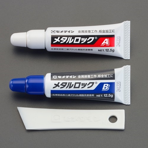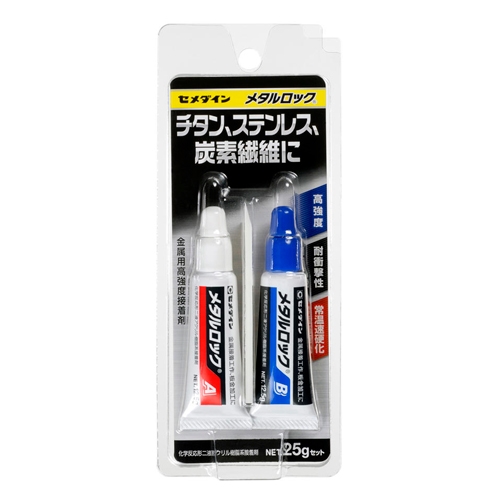 ●メーカー…セメダイン●型番…AY-123●商品名…メタルロック●内容量…25g●チタン、ステンレス、アルミニウム、鉄、銅、真鍮、亜鉛メッキ鋼、炭素繊維の接着に●カラー…ブラック(硬化後)●溶接に代わる金属同士の接合として●低臭気2液アクリル系接着剤●常温速硬化●使用温度範囲…-40~100度●硬化時間…23度15分で構造強度に到達します。●参考在庫数・商品詳細・サイズ情報はメーカー(参考)URLからもご確認いただけます。 ●最小出荷単位: 1