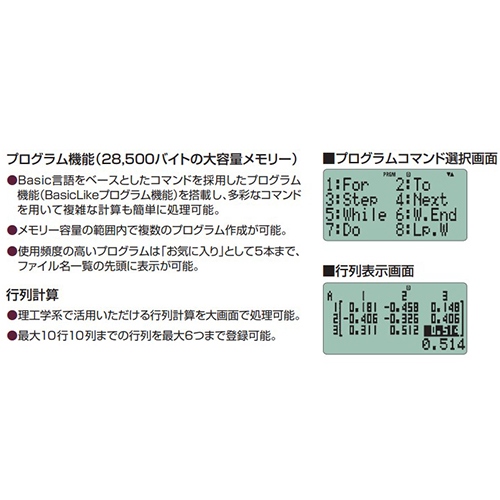 複雑な繰り返し計算もスピーディーに処理でき、式と計算結果が見やすい4行表示採用のプログラム関数電卓。