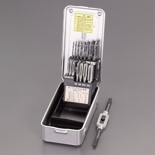 ●<セット内容>●ドリルサイズ:φ2.5mm●ドリルサイズ:φ3.3mm●ドリルサイズ:φ4.2mm●ドリルサイズ:φ5.0mm●ドリルサイズ:φ6.8mm●ドリルサイズ:φ8.8mm●ドリルサイズ:φ10.8mm●タップハンドル●タップサイズ:M3×0.5(中・上、各1本)●タップサイズ:M4×0.7(中・上、各1本)●タップサイズ:M5×0.8(中・上、各1本)●タップサイズ:M6×1.0(中・上、各1本)●タップサイズ:M8×1.25(中・上、各1本)●タップサイズ:M10×1.25(細目の中・上、各1本)●タップサイズ:M12×1.25(細目の中・上、各1本)●用途…自動車整備工場及び農機サービス用●総重量…約935g●●材質:SKS2(JIS)とは、合金工具鋼を意味し、炭素工具鋼にクロム、タングステン、モリブデン等金属成分を添加し、焼入れ硬さ、じん性、耐摩耗性を増した鋼の一種です。●対応被削材…構造用鋼、低炭素鋼、鋳鉄、アルミニウム合金、銅合金●参考在庫数・商品詳細・サイズ情報はメーカー(参考)URLからもご確認いただけます。 ●最小出荷単位: 1