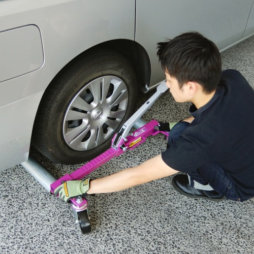 4台使用で1人でも車両の移動が可能!ペダルを踏むだけの簡単ジャッキアップ!
