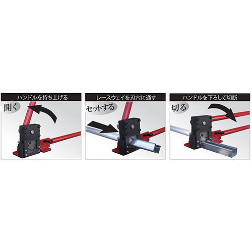 ●レースウェイ・ダクトチャンネル用●切断能力…レースウェイ:40(W)×30(H)×1.6(T)mm、ダクトチャンネル:40(W)×30(H)×2.0(T)mm●全長…940mm●重量…7.1kg●電力不要、手動で一発切断!●バリのない美しいカット面で、切粉や火花も出ない安全性●参考在庫数・商品詳細・サイズ情報はメーカー(参考)URLからもご確認いただけます。 ●最小出荷単位: 1