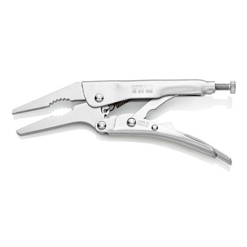 ●メーカー…KNIPEX(クニペックス)●型番…4134165●全長…165mm●バイス能力…丸:20mm、四角:10mm、六角:24mm●仕上げ…ニッケルメッキ●材質…ボディ:強力特殊鋼、アゴ:鍛造クロームバナジウム●重量(g)…189●つかみ面は横すじ入りです。●アゴの開きを調節するスクリューとリリースレバー付きです。●狭い場所でのクランプに最適なロングノーズタイプです。●簡単片手操作●参考在庫数・商品詳細・サイズ情報はメーカー(参考)URLからもご確認いただけます。 ●最小出荷単位: 1