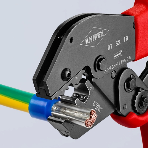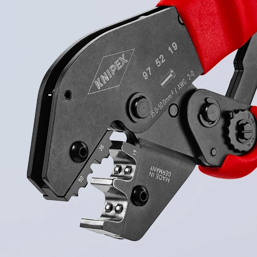 ●メーカー…KNIPEX(クニペックス)●型番…975219●対応端子…スリーブ(フェルール)●圧着範囲…35・50mm2●AWG(American Wire Gauge)…2・0●全長…250mm●重量…567g●材質…特殊工具鋼 (バナジウム電炉鋼、鍛造油焼入)●ハンドル…プラスチック●仕上げ…光沢仕上げ●精巧な作りのレバーで伝達力を 従来の30%向上。●精密なダイスと自動リリース機能付 ロックシステムにより、規格に適合した 圧着作業が繰り返し行えます。●重点のバランスが良く、人間工学に基づいた ハンドル形状でとりまわしが簡単です。●参考在庫数・商品詳細・サイズ情報はメーカー(参考)URLからもご確認いただけます。 ●最小出荷単位: 1