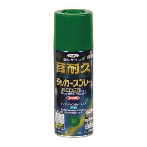 ●カラー…緑●内容量…300ml●乾燥時間(指触)…夏期:20~30分冬期:40~60分●塗り重ね時間の目安…1回で仕上げずに乾燥させてから2回目を塗装してください。●塗り面積(2回塗り)…0.6~1.2m2(タタミ0.4~0.7枚分)●塗料の種類…シリコン変性アクリルラッカー●塗膜の仕上がり…不透明(下地を隠す)●つや有り●アクリル樹脂塗料●家具、家電、機械器具、自転車等、屋内外の鉄・木製品に●シリコン変性アクリル樹脂の使用により耐久性が格段に優れたラッカースプレー●タレにくく、綺麗に仕上がります。●日光や雨に強く、美しい艶に仕上がります。●超速乾タイプ(夏期:20~30分、冬期:40~60分)●トルエン・キシレン・フタル酸系可塑剤を含まない環境配慮型●使用後容易に且つ安全に廃棄できるガス抜きキャップ付きです。●特化則対応品●屋内外用●用具の手入れ:使い終えた用具は、塗料が乾かないうちにラッカーうすめ液で洗ってください。●【下地処理など】・塗る面のゴミ、油分、ホコリ、ワックスをとります。・塗料がついて困る周囲はあらかじめマスキングテープや養生シートで覆います。・取り扱い中は、必要に応じてマスクや保護メガネ、手袋などを使用してください。●参考在庫数・商品詳細・サイズ情報はメーカー(参考)URLからもご確認いただけます。 ●最小出荷単位: 1