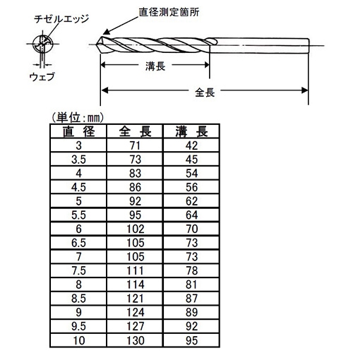 ●サイズ…3.0・3.5・4.0・4.5・5.0・5.5・6.0・6.5・7.0・7.5・8.0・8.5・9.0・9.5・10.0mm●先端角…118°●ねじれ角…標準●溝長…42~95mm●全長…71~130mm●先端形状…X型●材質…HSS(ハイス)●表面処理…酸化処理(ホモ処理)●総重量…約660g●入数…15本●(エクストラ正宗)●クロス&ポイントシンニング付●喰い付精度が良く、センタリング 加工不要●ステンレス、鉄、銅、アルミ用●先端角特殊研磨されており喰いこみのよいドリル●スチールケース入り●ステンレス、合金難削材等の穴あけに2倍以上の重切削が可能(送り速さ)で、又一段階アップの高速ドリリングができます。●センターリング性能が良いためポンチは不要、穴径精度が良く揃います。●先端ウェブに特殊なクロス&ポイントシンニングを施してあるので喰い込みが良く進行するので、すばらしい切れ味が得られます。●標準ドリルに見られる切れずに空転(刃先こすり摩擦による摩耗)が少ないので通常回転ならば数倍の耐久性があります。●回転数アップ、送り早さアップ、耐久性アップで能率が上がると共に再研磨の回数が減り、ランニングコストがぐんと下がります。●参考在庫数・商品詳細・サイズ情報はメーカー(参考)URLからもご確認いただけます。 ●最小出荷単位: 1
