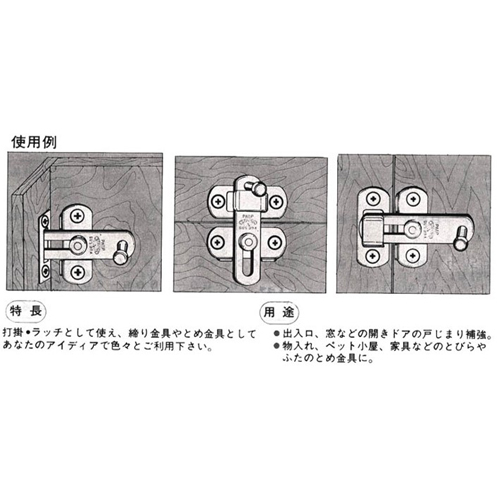 ●材質…SUS304●仕上…バレル研磨●A…70mm●B…50mm●穴径…5.2mm●使用ビス径(mm)…3.5×16●用途…出入口、窓などの開きドアの戸じまり補強や物入れ、ペット小屋、家具などの扉やふたのとめ金具に。●打掛・ラッチとして使え、締り金具やとめ金具としてご利用ください。●木ねじ付●参考在庫数・商品詳細・サイズ情報はメーカー(参考)URLからもご確認いただけます。 ●最小出荷単位: 1