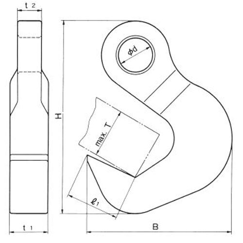 ●メーカー…三木ネツレン●型番…E2600●商品名…C型●材質…特殊合金鋼●特殊合金鋼をさらに熱処理しているので、非常に強靭です。●使用荷重(t)…8●爪長さ(L1)…90mm●口幅(max T)…50mm●全長(H)…295mm●サイズ…B:211mm、t1:70mm、t2:45mm、d:60mm●重量…17kg●参考在庫数・商品詳細・サイズ情報はメーカー(参考)URLからもご確認いただけます。 ●最小出荷単位: 1