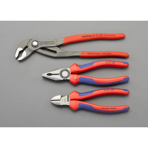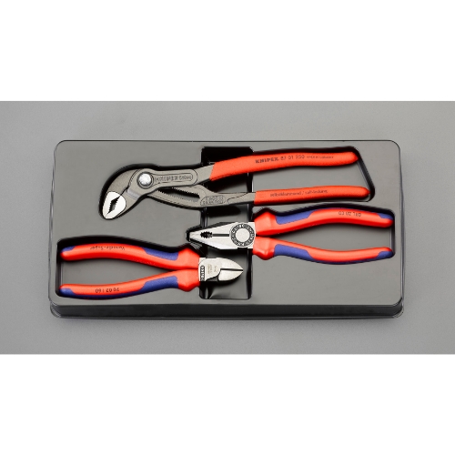●メーカー…KNIPEX(クニペックス)●型番…002009V01●〈セット内容〉・250mmウォーターポンププライヤー(コブラ)・180mm電工ペンチ・160mm電工ニッパー●トレイ付●参考在庫数・商品詳細・サイズ情報はメーカー(参考)URLからもご確認いただけます。 ●最小出荷単位: 1