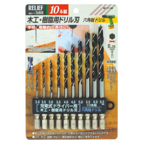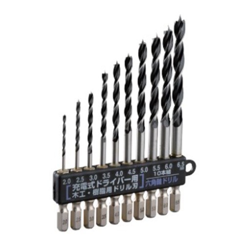 2.0- 6.5mm/10本組 六角軸ドリル(木工用)