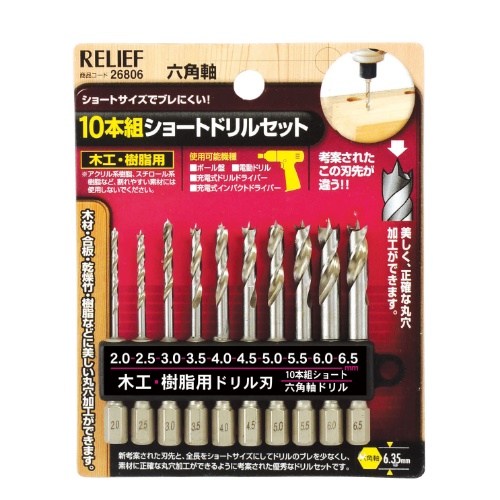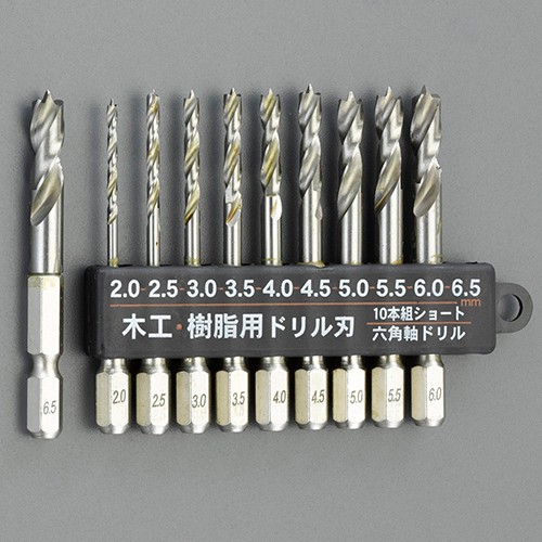 2.0-6.5mm/10本組 六角軸ドリル(木工用)