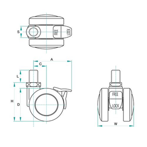 40mmキャスタ- ツインホイ-ル・ブレ-キ付