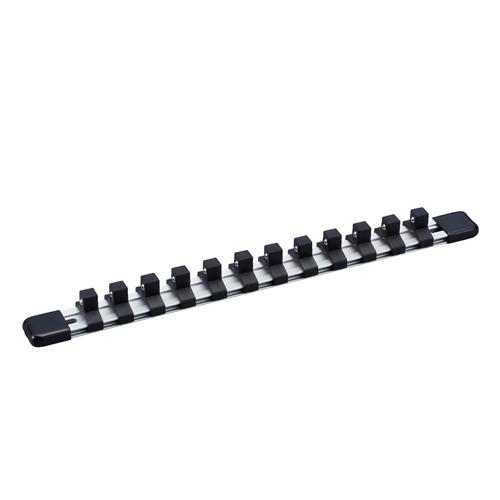 ●メーカー…TONE●型番…SH1312●差込角…3/8’’●クリップ数…12●全長(mm)…300●サイズ(mm)…D:26H:23●重量(g)…97●ソケット、ジョイント類をスッキリ整理することができるアルミレールのソケットホルダー。●クリップは樹脂製(鋼球付き)でソケットの取り外しが容易です。●ソケットを装着したままレール上をスライドできます。●両端にねじ穴付きで壁掛けやデスクへの固定が可能です。●参考在庫数・商品詳細・サイズ情報はメーカー(参考)URLからもご確認いただけます。 ●最小出荷単位: 1
