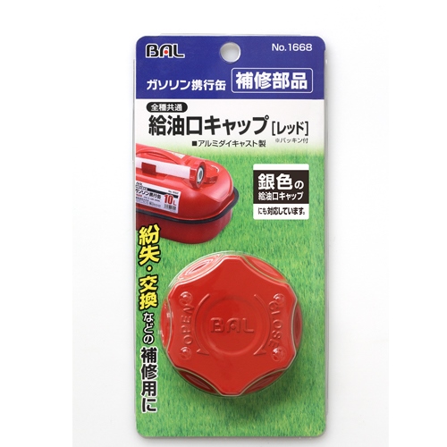 ●メーカー…大橋産業(BAL)●型番…No.1668●名称…給油口キャップ●材質…アルミダイキャスト製●サイズ…63(W)×19(H)mm●給油口キャップ(レッド)●ガソリン携行缶 補修部品●パッキン付き●参考在庫数・商品詳細・サイズ情報はメーカー(参考)URLからもご確認いただけます。 ●最小出荷単位: 1