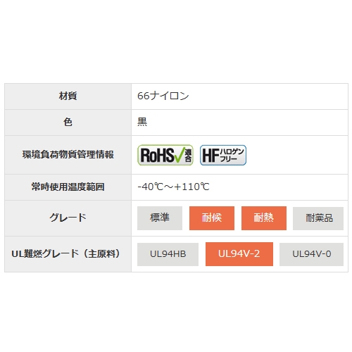 ●メーカー…ヘラマンタイトン●型番…Z130R-HSW●全長(mm)…402●幅(mm)…7.8●厚み(mm)…1.6●最大径(mm)…105●入数(本)…100●ループ引張強度(kgf)…580●使用温度範囲…-40~110度●結束径…φ3~105mm●材質…66ナイロン●RoHS適合●ハロゲンフリー●耐熱・耐候●高温・屋外外環境下●鉄道車両用材料燃焼試験判定:難燃性●ロイドレジスター(LR)船級規格●優れた耐振動性と耐衝撃性・機械的強度を持ち合わせたプラスチック一体成形品です●ストラップをヘッドに入れる際の挿入抵抗が低く、作業性に優れています●モーター周り、工作機械、製造機械や鉄道車両、自動車、船舶など、振動が多く発生する場所での結束に最適です●参考在庫数・商品詳細・サイズ情報はメーカー(参考)URLからもご確認いただけます。 ●最小出荷単位: 1