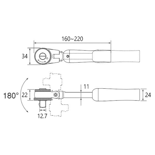 1/2in DR160-220ラチェトハンドル伸縮首振