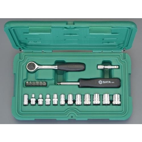 ●メーカー…SATA●型番…09521●差込角…1/4’’●ソケット(六角)…4・5・6・7・8・9・10・11・12・13・14mm●ラチェットハンドル…143mm●エクステンションバー…50mm●(-)ビット…4・5・6mm●(+)ビット…#1・#2・#3●ビットホルダー●(1/4’’DR)ドライバーハンドル●ラチェットはクイックリリースタイプ●参考在庫数・商品詳細・サイズ情報はメーカー(参考)URLからもご確認いただけます。 ●最小出荷単位: 1