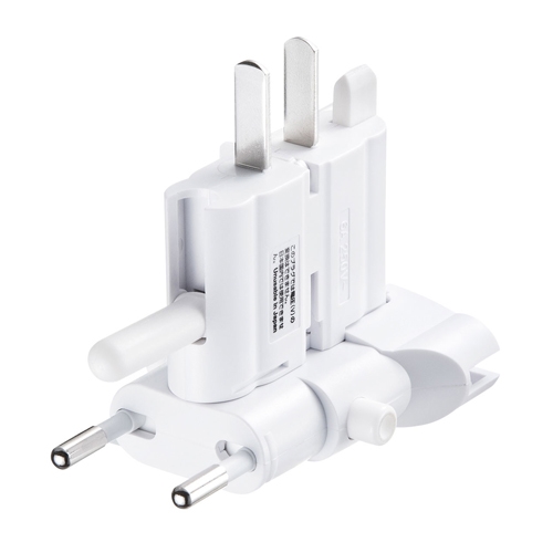 一台でほぼ全世界のプラグ形状(9種類)に変換できるマルチアダプタ