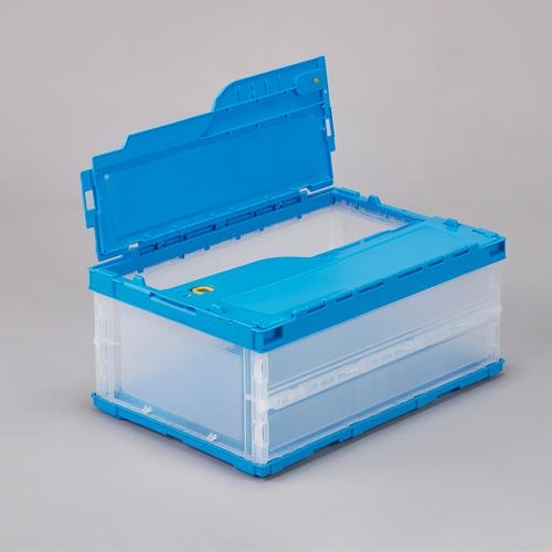 530x366x232mm/34.1L折畳コンテナ青/蓋付薄