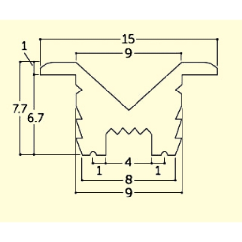 9(15)x1800mm戸車用レール(V型/アルミ製/銀