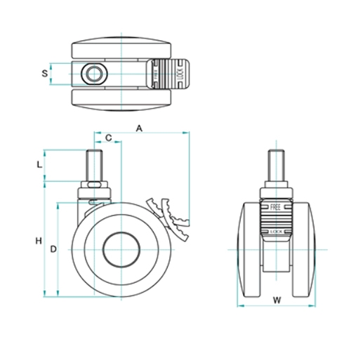 75mmブレーキ付双輪キャスター(W3/8in )