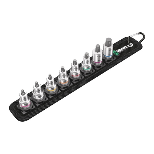 ●メーカー…Wera●型番…003974●対辺(インチ)…1/8・9/64・5/32・3/16・7/32・1/4・5/16・3/8(8個組)●全長(mm)…35~38.5●差込角…3/8’’●ツイストロックによりソケットの取り付け取り外しがスムーズに行えます。●ベルトループまたはポケットにしっかり引っ掛けるスナップフック付●サイズに応じて色分けされています。●ホールド機能付先端のボールの働きでボルト・ナット類の脱落を防ぐ形状です。●手締め時に便利なローレット加工●参考在庫数・商品詳細・サイズ情報はメーカー(参考)URLからもご確認いただけます。 ●最小出荷単位: 1