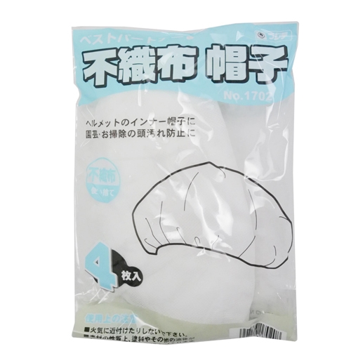 ●サイズ…フリー●入数…4枚●材質…ポリプロピレン●帽子形状…丸天●重量…27.5g●カラー…白●ヘルメットのインナー帽子に●園芸・お掃除の頭汚れ防止に●参考在庫数・商品詳細・サイズ情報はメーカー(参考)URLからもご確認いただけます。 ●最小出荷単位: 1