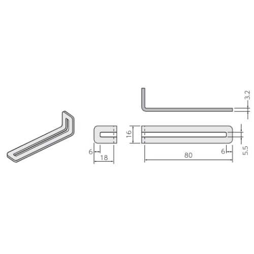 M5/80x16x18mm補助金具(山形鋼・溝形鋼用)