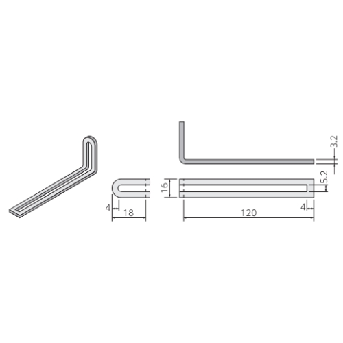 120x16x18mm補助金具(山形鋼・溝形鋼用)