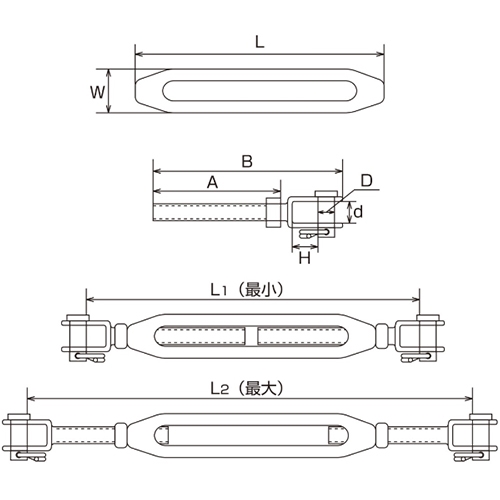 5/16in ターンバックル/フォーク&フォーク