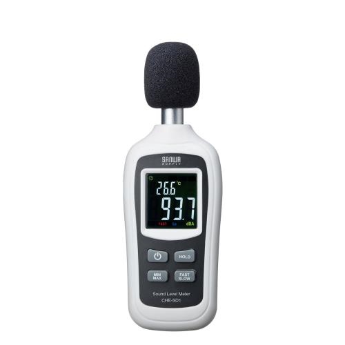 小型サイズで携帯性に優れた、気温測定機能付きのデジタル騒音計。