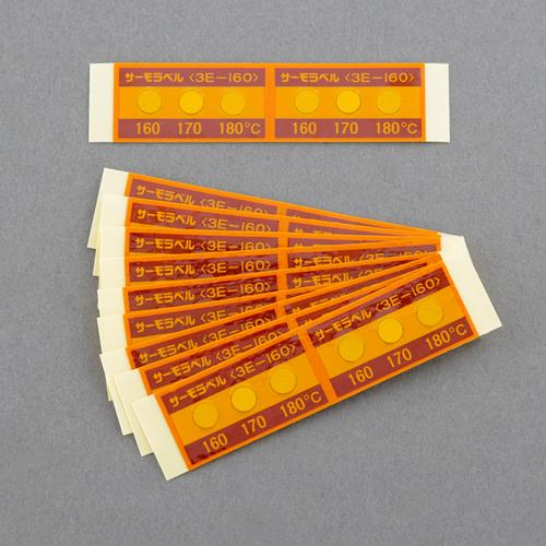 ●メーカー…日油技研工業●型番…3E-160●商品名…サーモラベル-3E●変色温度…160・170・180℃●変色前の色…白●変色後の色…黒・黒・黒(不可逆)●変色精度…±2~3℃●サイズ…17×32mm●入数…20枚●材質…フィルム、示温インキ、紙、接着剤●用途…屋内外の発熱・加熱温度管理。電力会社や工場の受変電設備・機械設備の発熱点検。熱処理工程管理。流通時の温度管理。●仕様…不可逆性●3点式●3段階の示温部で、10℃間隔で温度表示●10℃間隔で、40℃から250℃までの幅広い温度帯での温度検知が可能です。●耐久性に優れており、室内外の発熱・加熱温度管理用として広い分野にわたって活用されています。●電力会社や工場の受変電設備・機械設備の発熱点検用として事故の未然防止、保守合理化に利用されています。●特定温度でシャープに変色します。一度変色すると、元の色に戻らない不可逆性示温材です。●変色する示温エレメントは、精製された安定性のある溶解性顔料の融点を利用したものですから、示温性は正確で、高精度示します。●示温エレメントは、耐熱性フィルムで密封されていますので、水、薬品、油や、環境雰囲気の影響を受けません。●裏面には耐熱性粘着材が塗布してありますので、裏紙(離型紙)を剥がすだけで、測温部に貼って使用することができます。●参考在庫数・商品詳細・サイズ情報はメーカー(参考)URLからもご確認いただけます。 ●最小出荷単位: 1