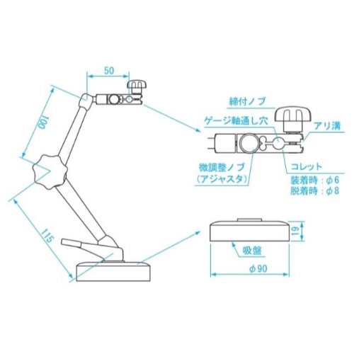 ●メーカー…新潟精機●型番…VB-200●ポスト全長…100+115mm●ゲージ取付穴径…6・8mm●ベース径…90mm●重量…540g●吸着力…約200N●材質…本体:アルミ吸盤:ゴム●用途…ダイヤルゲージ、ダイヤルインジケータ(てこ式)の測定保持具として●精密石定盤上でダイヤルゲージ・インジケータがご使用頂けます。●吸盤による固定のため石定盤などの非磁性体への使用が可能です。●アリ溝取付●参考在庫数・商品詳細・サイズ情報はメーカー(参考)URLからもご確認いただけます。 ●最小出荷単位: 1