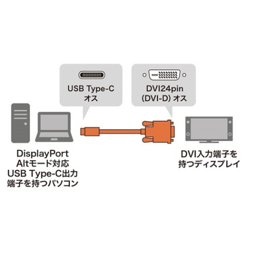 DisplayPort AltモードのUSB Type-CのPCとDVIのディスプレイをアダプタ無しで直接接続することができるケーブル