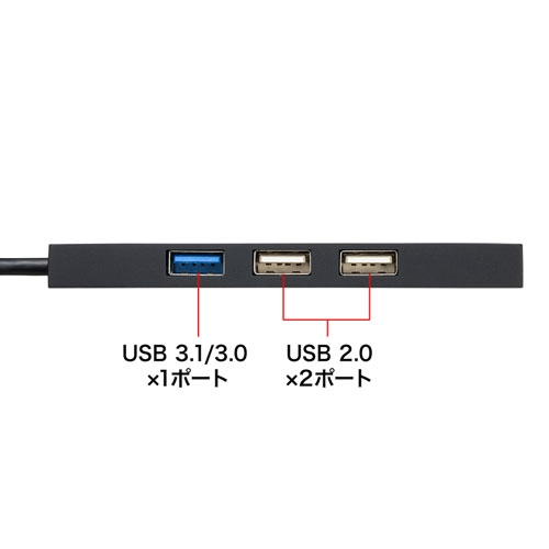 ●メーカー…サンワサプライ●型番…USB-3TCHC16BK●サイズ(W×D×H)mm…110×36×10●重量(g)…30●ケーブル長…15cm●電源…バスパワー●カラー…ブラック●コネクタ…USB3.2 Gen1(USB3.1/USB3.0) Aコネクタ メス×1(ダウンストリーム)USB 2.0 Aコネクタ メス×2(ダウンストリーム)Type-Cコネクタ オス×1(アップストリーム)●インターフェース規格…USB仕様 Ver.3.2 Gen1(USB3.1 Gen1/USB3.0)準拠(USB Ver.2.0/1.1上位互換) ●通信速度…5Gbps/480Mbps/12Mbps/1.5Mbps(理論値)●ポート数…3ポート●対応OS…Windows 11・10・8.1・8・7macOS 11、macOS 10.12~10.15、Mac OS X 10.4~10.11iPadOS 13~15Chrome OS※iPadOSについてはType-Cポート搭載のiPad Proのみの対応です。●USB3.2 Gen1(USB3.1/USB3.0)×1ポート、USB2.0×2ポートのコンボハブにSDカードスロットとmicroSDカードスロットが付いた便利なハブです。●Type-Cコネクタ搭載で、Type-Cポートを搭載したパソコンなどで使用できます。●ワイヤレスマウスのレシーバーなどUSB3.2 Gen1(USB3.1/USB3.0)が必要ない機器と併用するのに最適です。●1台のパソコンで3台のUSB機器を共有でき、SDカードとmicroSDカードが読み書きできます。※カードリーダーはUSB2.0の速度です。●多くの携帯電話に採用されているmicroSD・microSDHC・microSDXCカードがそのまま使えます。●SDXCメモリーカード(UHS-I・UHS-II)256GBに対応、microSDXCメモリーカード UHS-II 128GBにも対応しています。※UHS-I・IIの転送速度には対応していません。※カードリーダーはUSB2.0の速度です。※USB3.1 Gen2には対応していません。※USB3.2 Gen1(USB3.1/USB3.0)はUSB-IF(USB Implementers Forum)によりUSB3.0が名称変更されたもので同じ規格です。●AC電源不要のバスパワータイプです。●Windows&Mac両対応です。<ご購入前にご確認ください>※USB3.2 Gen1(USB3.1/USB3.0)ポートにUSB2.0/1.1規格の製品を接続する場合、最大転送速度は遅いほうの規格になりますのでご注意ください。 ※本製品はUSBハブですが全てのUSB機器に接続、動作を保証できるものではありません。 ※本製品はUSB3.2 Gen1(USB3.1/USB3.0)規格に対応しておりますがUSB3.2 Gen1(USB3.1/USB3.0)の規格値(5Gbps)の転送速度を保証するものではありません。 ※本製品はバスパワー専用です。接続する周辺機器の4ポートの合計値が800mA以内の場合に限り使用可能です。 ※接続した周辺機器の消費電流合計値が820mA以上の場合、正常に動作しないことがあります。●参考在庫数・商品詳細・サイズ情報はメーカー(参考)URLからもご確認いただけます。 ●最小出荷単位: 1