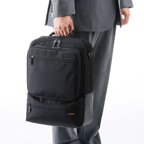 ●メーカー…サンワサプライ●型番…BAG-3WAY23BK●サイズ(W×D×H)mm…315×140×420●重量(kg)…0.86●PC収納…15.6インチワイドまで●タブレット収納…10.1インチまで●材質…ポリエステル●カラー…ブラック●リュック、ショルダー、手提げの軽量3WAYビジネスバッグです。●底と側面には水や汚れに強いコーティング生地を採用しています。●パソコンは厚手のクッションポケットに収納します。●タブレットポケットも装備しています。●参考在庫数・商品詳細・サイズ情報はメーカー(参考)URLからもご確認いただけます。 ●最小出荷単位: 1