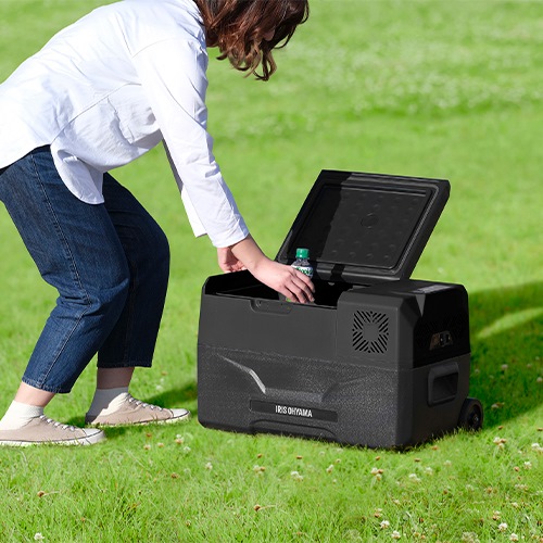 ●メーカー…アイリスオーヤマ(IRIS OHYAMA)●型番…IPD-3A-B●方式…コンプレッサー式●容量…30L●サイズ…外寸:615×390×375(H)mm内寸:318×250×280(H)mm●重量…12kg●電源…DC12V/24Vまたは、AC100V(ACアダプター使用)●消費電力…MAX急速モード:45W、ECO節電モード:30W ●設定温度…-20~20度●使用環境温度…10~32度(加温機能はありません)●収納目安…500mlペットボトル:21本350ml缶:42本●電源コード長…交流電源:2.0m(電源コード+ACアダプター)直流電源:約3.4m●USBポート出力…5V、1A●材質…PE、PS、シクロペンタン等●付属品…電源コード、ACアダプター、シガーソケット用コード●買物カゴ1個分がまるごと入る!●さまざまなシーンで活躍するポータブル冷蔵冷凍庫です。●温度設定は-20~20度。冷蔵はもちろん冷凍保存も可能!●アウトドアシーンの幅が広がります。●DC電源は12V・24Vに対応。●普通車・大型車どちらでも使えます。●AC電源にも対応していますので、自宅でのサブ冷蔵庫としてもおすすめです。●本体にはスマホ等の充電ができるUSBポート付き。●車輪とハンドル付きで、カートのように持ち運べます。●たっぷり入れて重たくなっても持ち運びラクラク。 ●最小出荷単位: 1
