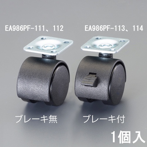 ●メーカー…ユーエイキャスター●型番…PT-40GS●仕様…自在ストッパー付●車輪径×幅(mm)…40×40.5●耐荷重(kg)…20.4●取付高…55mm●取付座…38×38mm●取付寸法…25.4×25.4mm●取付穴径…5.1mm●偏心…15mm●旋回半径…47mm●材質…車輪、ホイール:ナイロン金属部:スチール(三価ユニクロ仕上)●プレート式●オフィス家具や複合機等に最適な双輪キャスターです。●ナイロン素材を採用し、柔らかい床でもスムーズな移動が可能です。●参考在庫数・商品詳細・サイズ情報はメーカー(参考)URLからもご確認いただけます。 ●最小出荷単位: 1