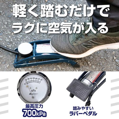 ●メーカー…大自工業(Meltec)●型番…P-10●サイズ…最小:約235×89×73(H)mm最大:約280×89×225(H)mm●ホース長…600mm●重量…850g●最高圧力…700kPa(4kgf/cm2)●材質…本体:スチール●付属品…バイク用・自転車用・ボール用・ボート用・浮き輪用ノズル●圧力計付●軽く踏むだけでラクに空気が入ります。●滑りにくく踏みやすいラバーペダル●自転車は英・米式に対応●オートバイに対応(ノズル不要)●※自転車(米式バルブ)とオートバイへ使用する場合はアダプターを使用せず直接取り付けて下さい。●4種のノズル付(自転車用・ボール用・ボート用・浮き輪用)●参考在庫数・商品詳細・サイズ情報はメーカー(参考)URLからもご確認いただけます。 ●最小出荷単位: 1