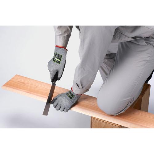 ●メーカー…ショーワグローブ●型番…DURACoil 546●サイズ…S●全長(mm)…220●掌周り(mm)…175●中指長さ(mm)…76●材質…樹脂部:ポリウレタン繊維部:ポリエチレン、ポリエステル、ガラス繊維(グラスファイバー)、その他●厚み(mm)…1.1●入数…1双●カラー…本体:グレー裾:グリーン●用途…食品関連業、機械工業、ガラス・建材関連業自動車関連業、土木建築関連業などに。●注意…・体質によっては、かゆみ・かぶれ・発疹等をおこすことがあります。異常を感じたら使用を中止し、医師に相談してください。・樹脂部でも薬品や溶剤は透過するため、使用しないでください。・樹脂部でも水等の液体は浸透するため、触れないでください。・熱いものに触れないでください。火傷するおそれがあります。・耐切創強度のある繊維を使用していますが、全く切れないものではありません。刃物等に直接触れる場合は、十分注意して使用してください。・絶縁機能はないため、感電のおそれがある電気作業には使用しないでください。・回転体を伴う作業(ボール盤・面取り盤等)には使用しないでください。手が巻き込まれるおそれがあります。・繊維製のため、自己発塵があります。また、樹脂部においても摩耗すると発塵する場合があります。使用に際しては、発塵性を確認の上、使用してください。・使用後は汚れをよく洗い落とし、陰干ししてください。保管する時には直射日光を避けてください。●ANSI/ISEAレベルA3●欧州の規格 EN 388:2016に準拠4X42C●グラスファイバー糸を組み合わせた独自の繊維「DURACoilR(デュラコイル)」と高強度ポリエチレン糸を採用。●発泡ポリウレタンを手のひらにコーティングしているため、高いスベリ止め効果を発揮し、通気性にも優れています。●繊維部分は編み目が細かく縫い合わせのない、独自の13ゲージ・シームレス編み手袋です。●独自の13ゲージ・シームレス編み手袋。●洗濯により繰り返し使用可能。●裾部分は、ほつれを防ぐオーバーロック加工を施しています。●指を曲げ伸ばししても指先までのフィット感を維持する手袋形状で、細かな作業にも適しています。●耐切創性と肌触りの良さ、高い作業性を実現しています。●参考在庫数・商品詳細・サイズ情報はメーカー(参考)URLからもご確認いただけます。 ●最小出荷単位: 1