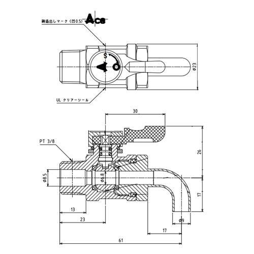 ●メーカー…アソー(ASOH)●型番…UL-1300●取付ねじ…R3/8’’●使用圧力…0.98MPa以下●使用温度…-10~120℃(凍結箇所を除く)●材質…ステンレス(SCS13)●外ネジ・ドレン型●一次側がテーパー(R)外ネジ、二次側はドレンの下向き排出用の形状です。●カランの替わりとして、タンクや容器にご使用いただけます。●参考在庫数・商品詳細・サイズ情報はメーカー(参考)URLからもご確認いただけます。 ●最小出荷単位: 1
